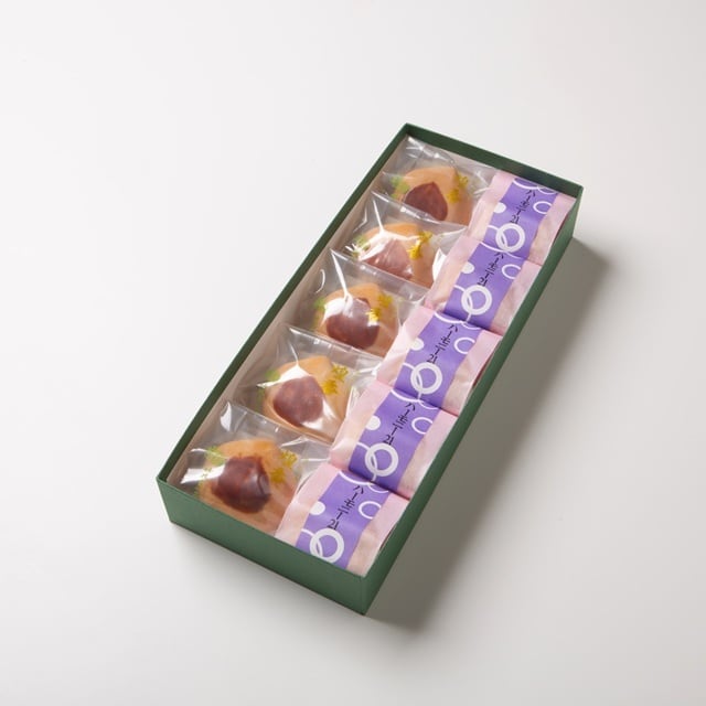 生地には富美菊酒造(羽根屋)の酒粕を、餡には純米吟醸(煌火)を練り込んだ大人の栗まんじゅう。刻み栗をバランスよく配合した栗餡を渋皮をイメージした小豆こし餡で包んだ二重包餡。栗の食感・芳醇な酒の香り・見た目が楽しめる、三拍子揃った逸品。